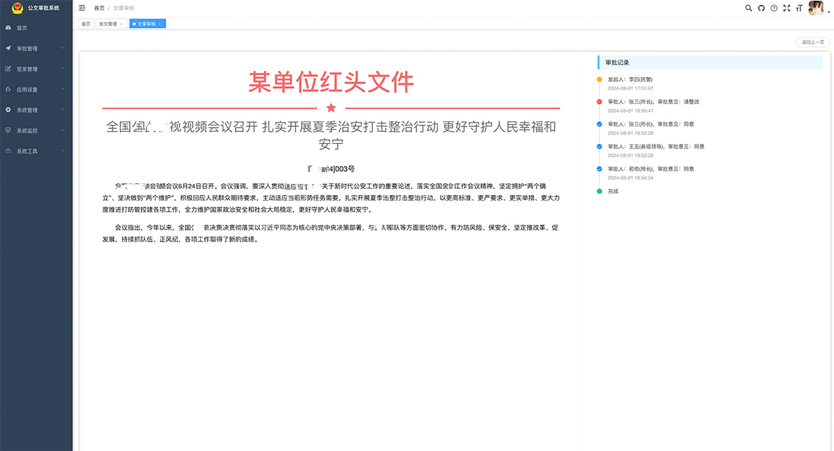 適用于政府機關、企事單位公文審批,系統采用Java EE 企業級快速開發平臺,基于經典技術組合(Spring Boot、Spring Security、MyBatis、Jwt、Vue),內置模塊如:部門管理、角色用戶、菜單及按鈕授權、數據權限、系統參數、日志管理、代碼生成等;
